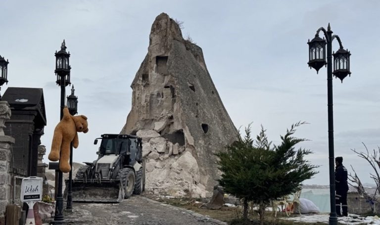 Kapadokya’da peri bacası çöktü: O anlar kameralara yansıdı!